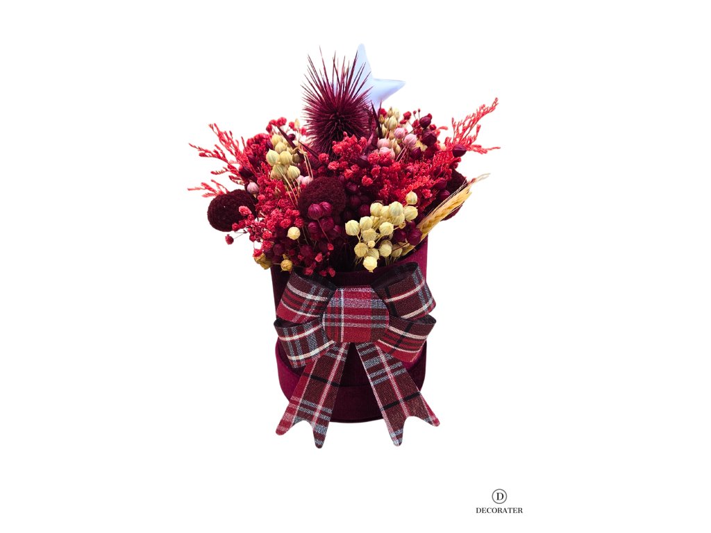 Luxusní vánoční flower box v bohatých červených tónech. Vydrží krásný celé měsíce bez zalévání.